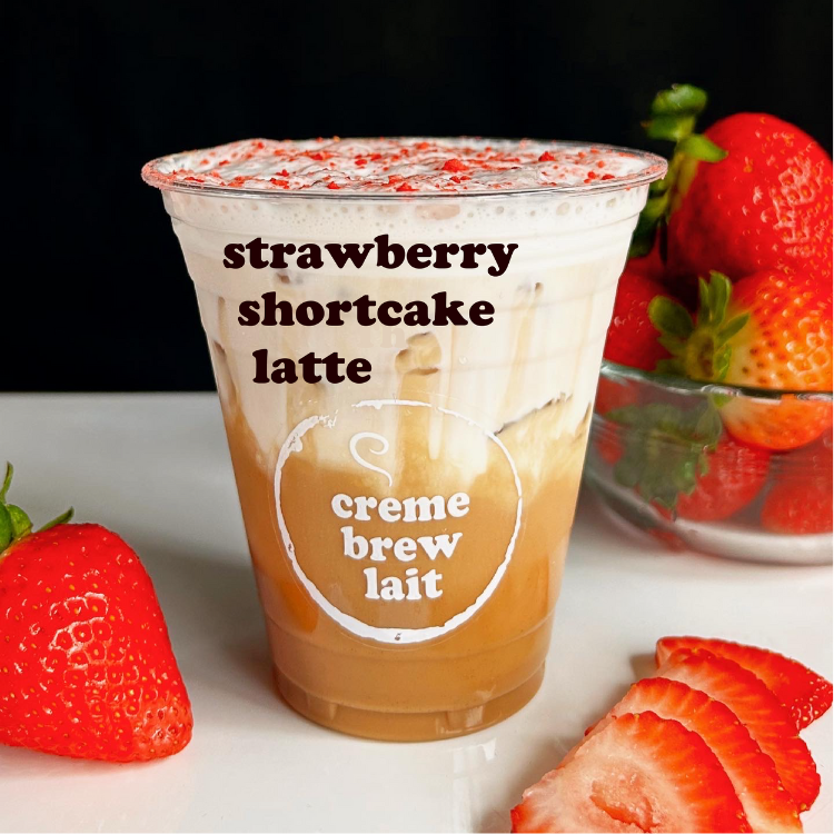 The Strawberry Shortcake Latte – flavored with strawberry and vanilla syrups. Option to add cold foam.