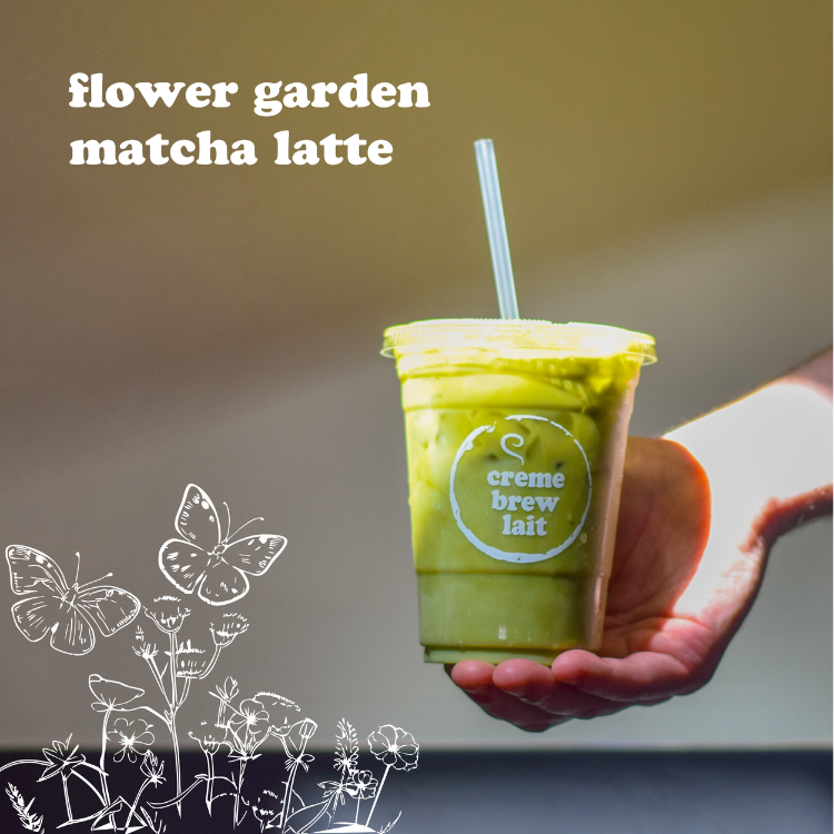 The Flower Garden Matcha Latte – a green tea latte sweetened with blackberry, rose and lavender syrups.